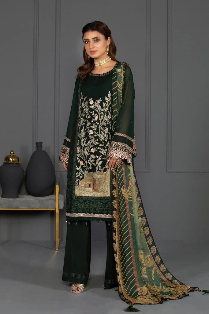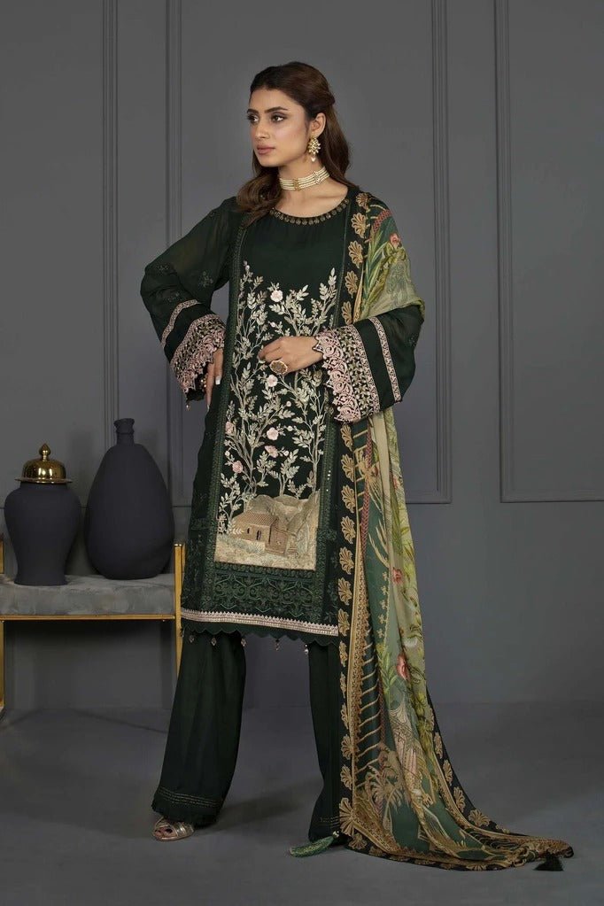 Sapphire 3 Piece Unstitched Embroidered Emerald Green - V4