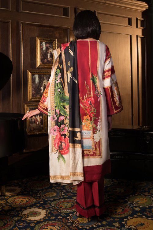 2. Unstitched suits include fabric and patches only as mentioned in the description above (not Embellishments e.g. tassels etc).