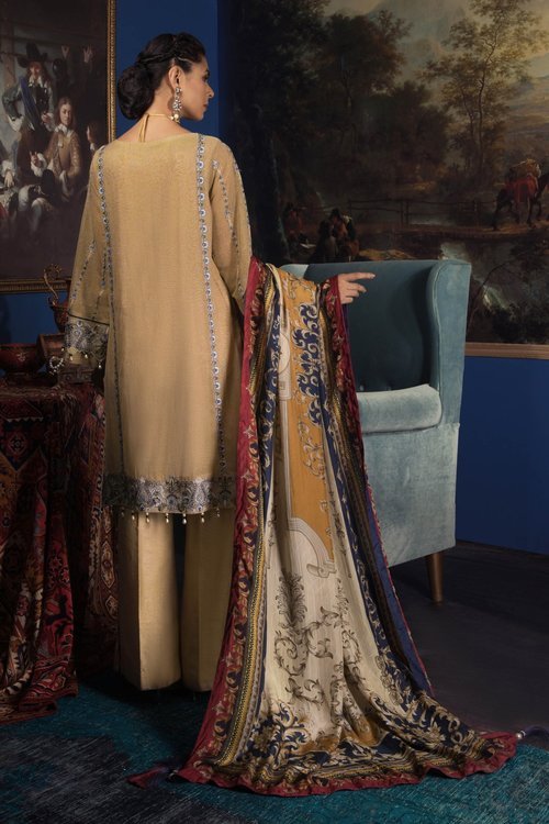 • Dyed Zari Khaddi Net shirt Back 1.15 m