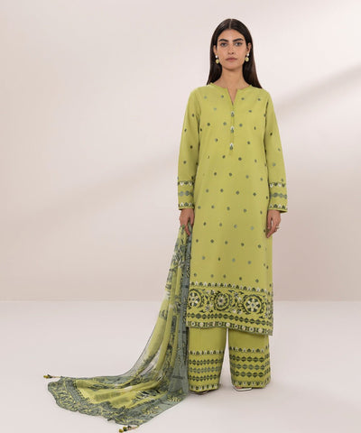 Sapphire 3 Piece Unstitched Embroidered Khaddi Zari Cotton Mint Obsession - V4