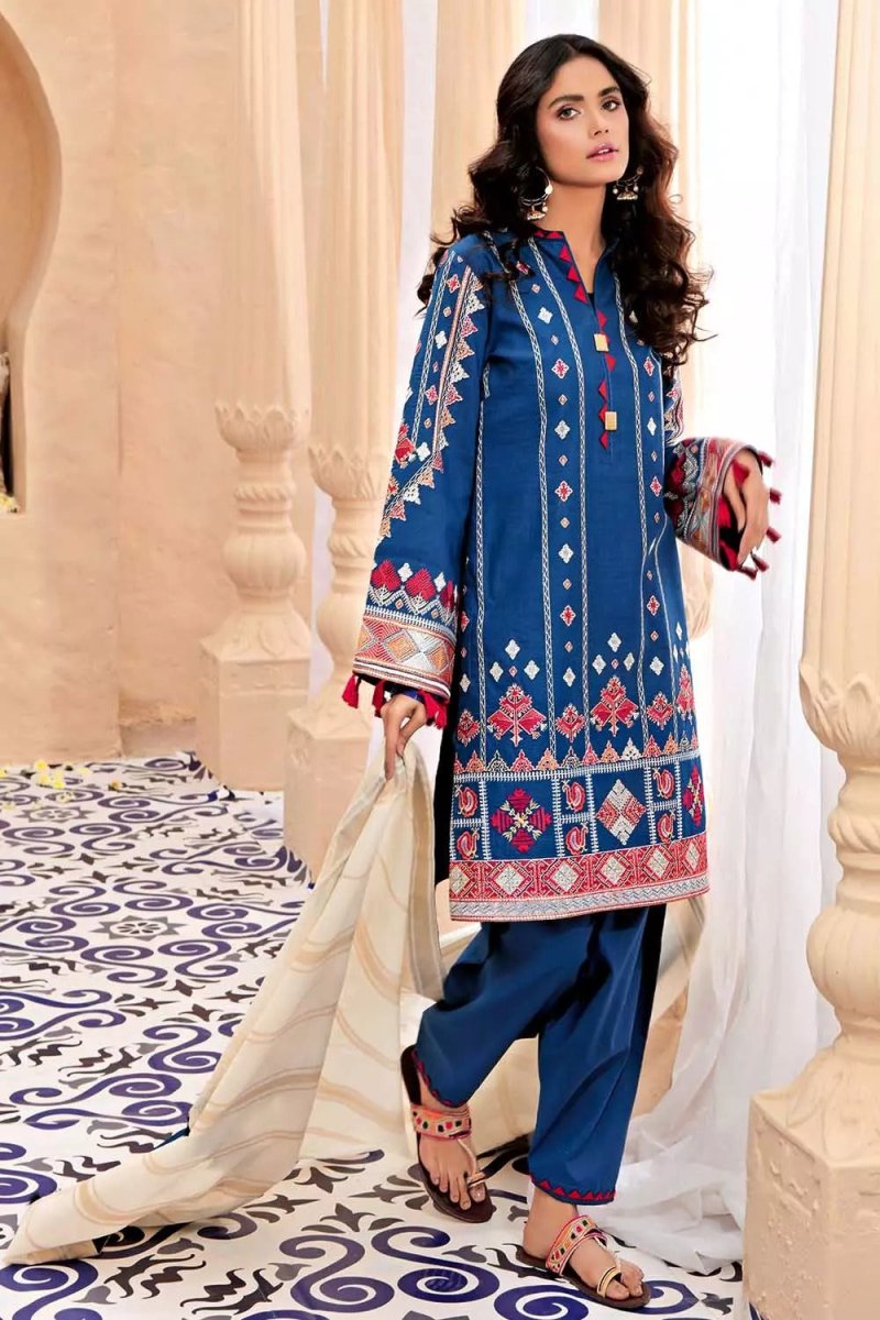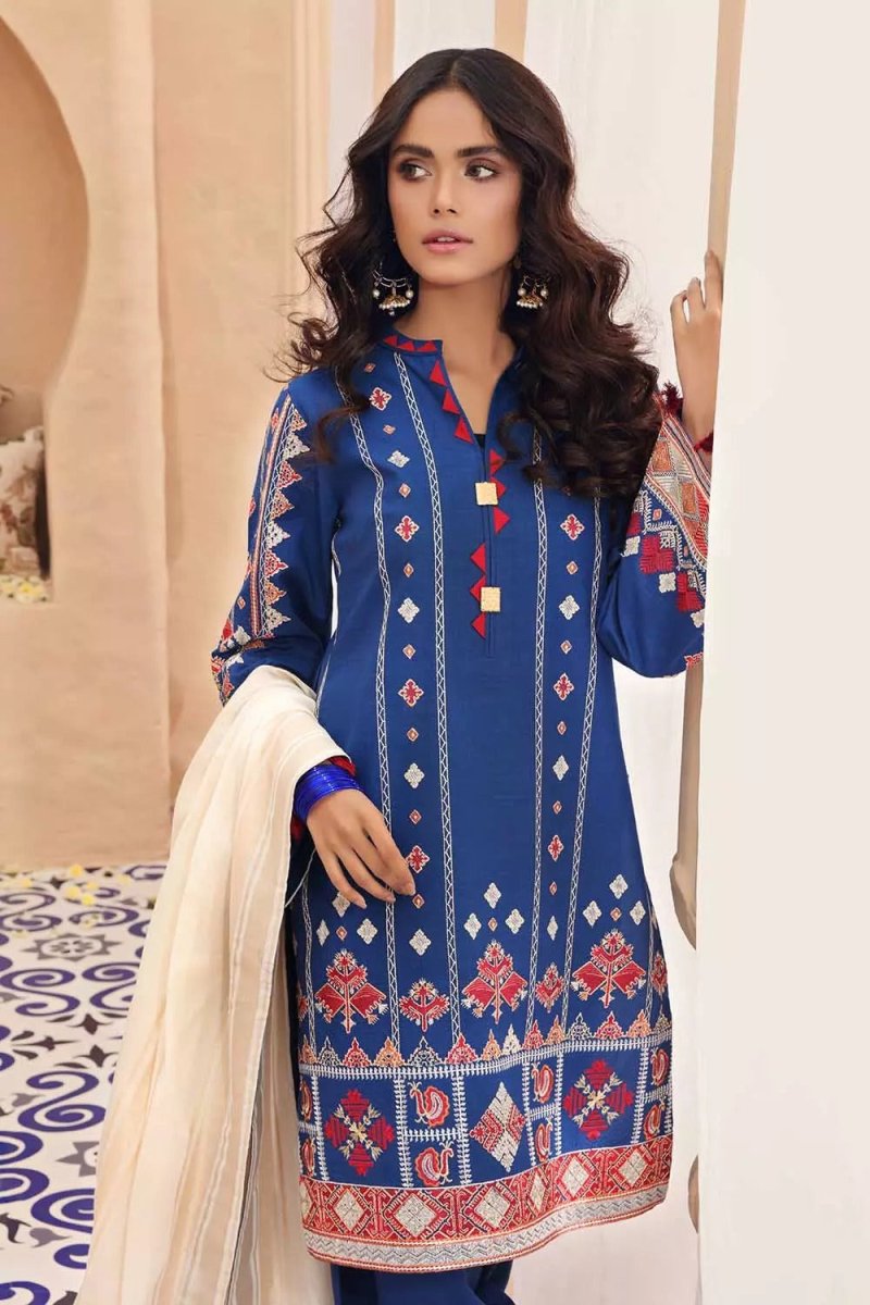 • Embroidered Dyed Lawn Front & Sleeves with Zari with Dyed Lawn Back – 2.43 meters