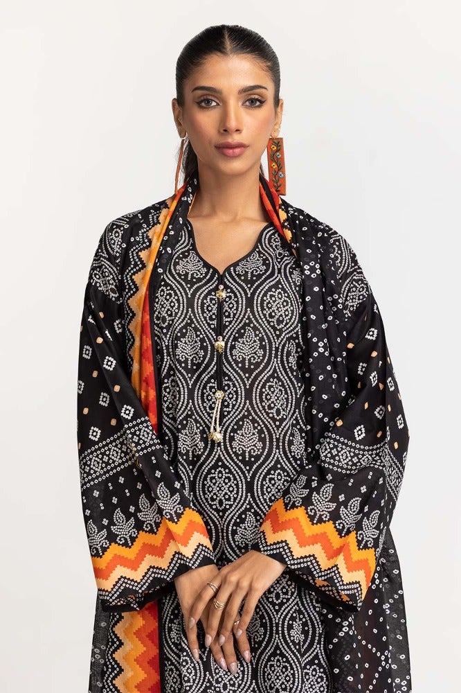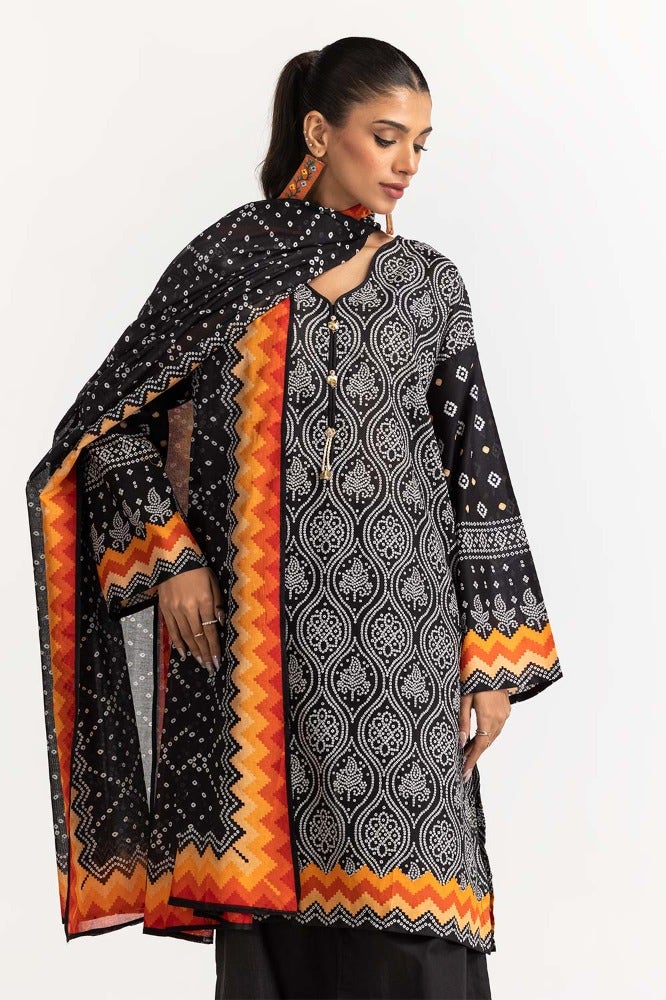 Gul Ahmed 03 Piece Stitched Printed Lawn Shirt Dupatta Dyed Trouser KJP-43162