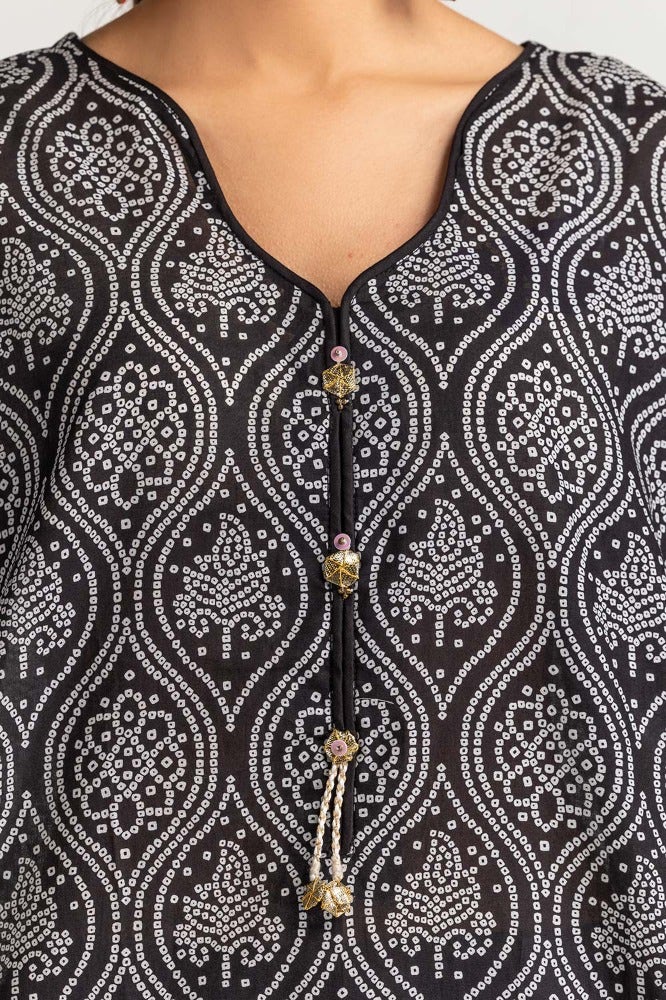 • Digitally printed lawn shirt featuring a round neck with a V and embellishment, straight hemline, and bell sleeves. Paired with a matching printed dupatta and a plain shalwar.