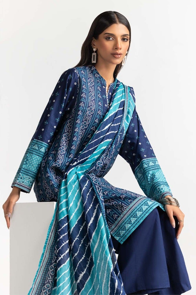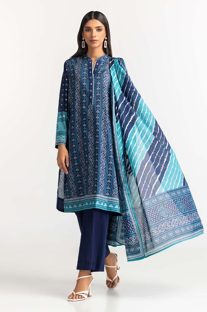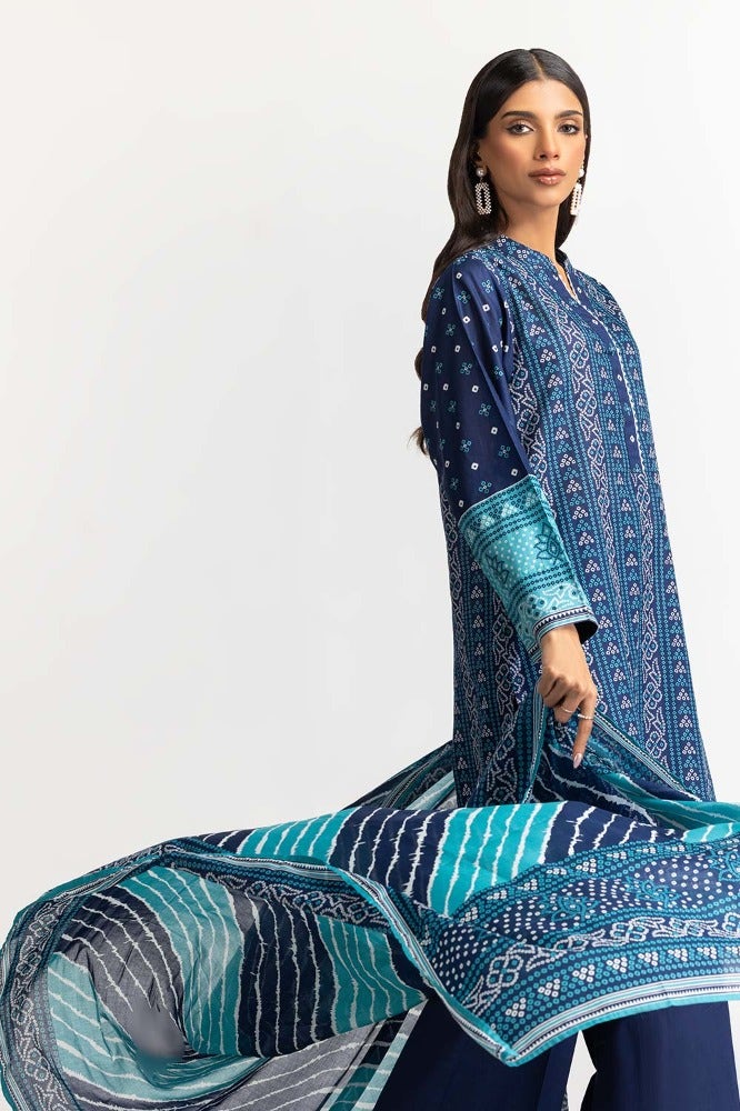 Gul Ahmed 03 Piece Stitched Printed Lawn Shirt Dupatta Dyed Trouser KJP-43183
