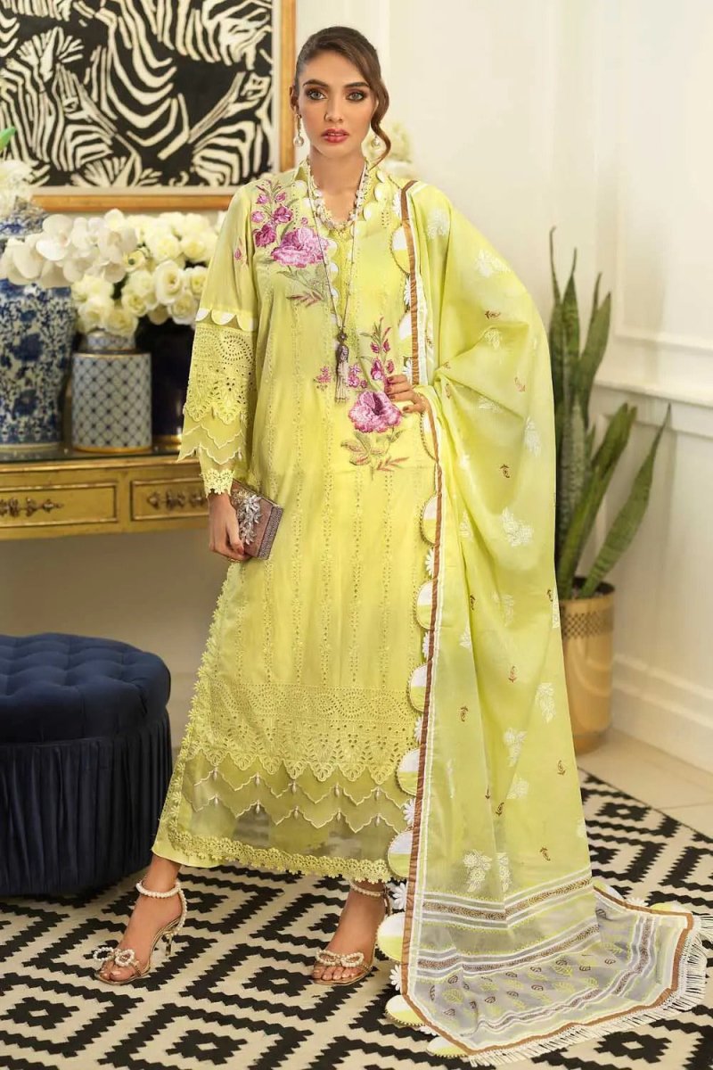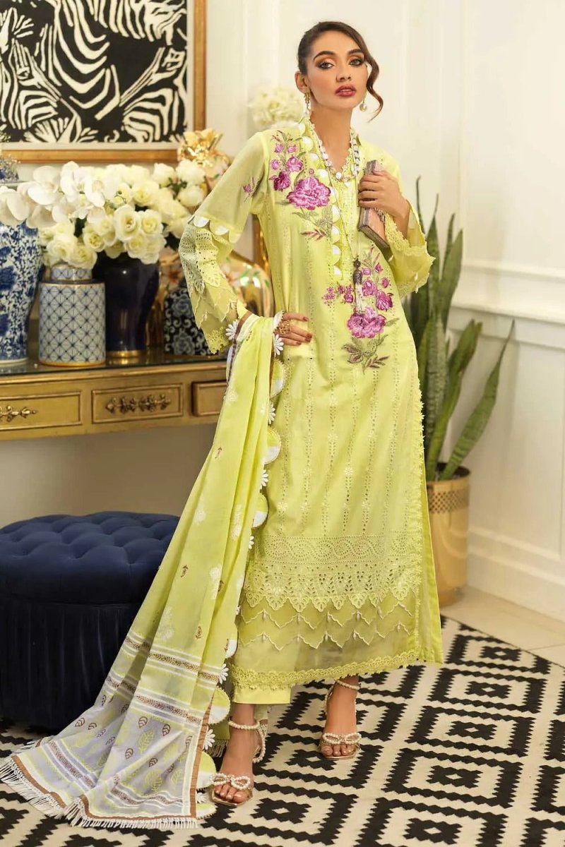 Gul Ahmed 3PC Unstitched Schiffli Embroidered Lawn Suit with Gold and Lacquer Printed Dupatta DN-22049