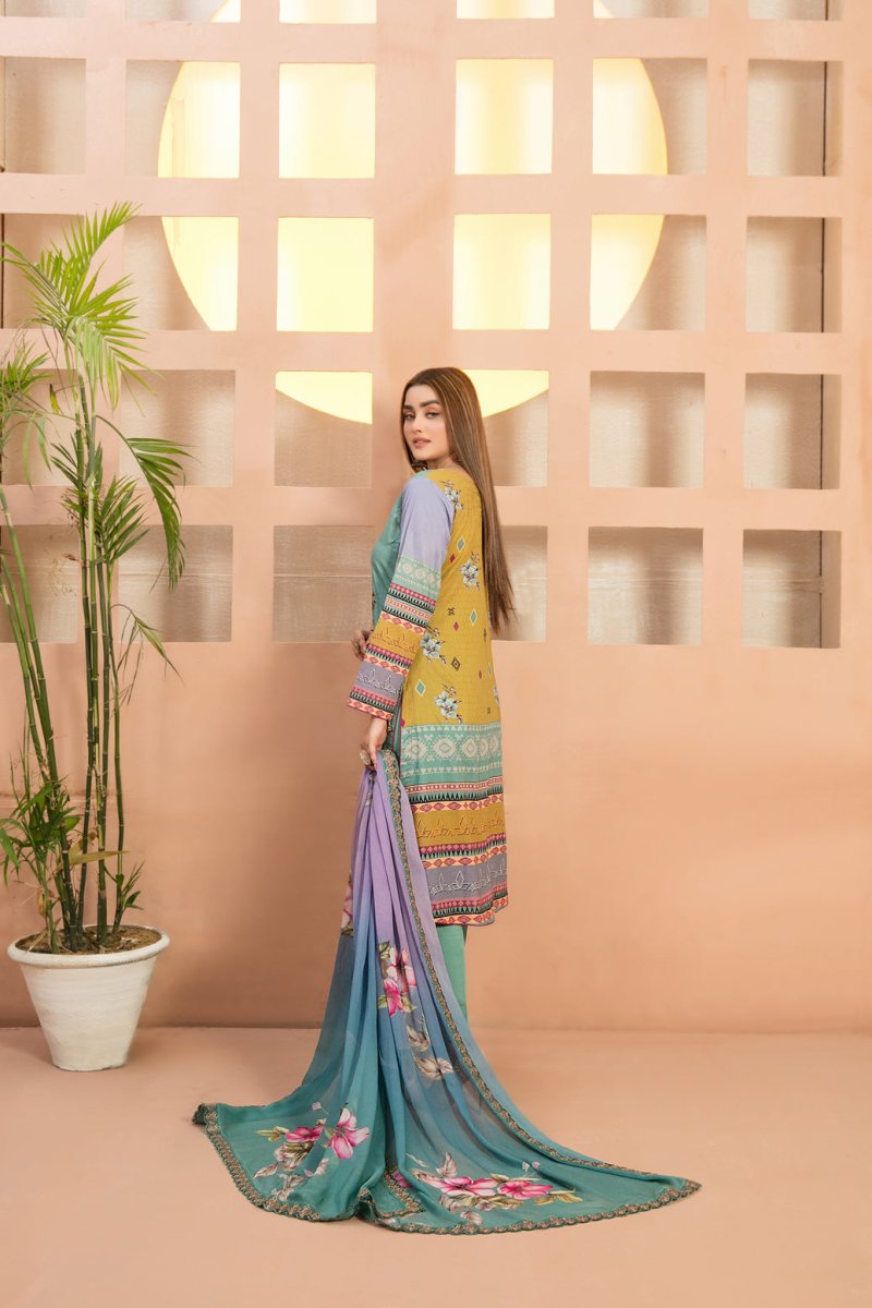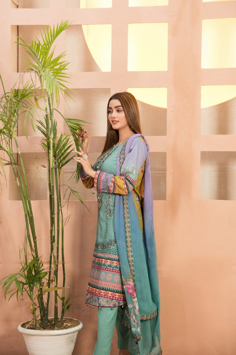 Tawakkal Fabrics 3 Piece Stitched Fancy Embroidered Digital Printed Lawn Suit D-8952