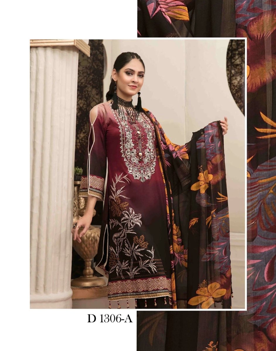Amna Sohail By Tawakkal Fabrics 3 Piece Stitched Lavish Intricacy Suit D-1306-A