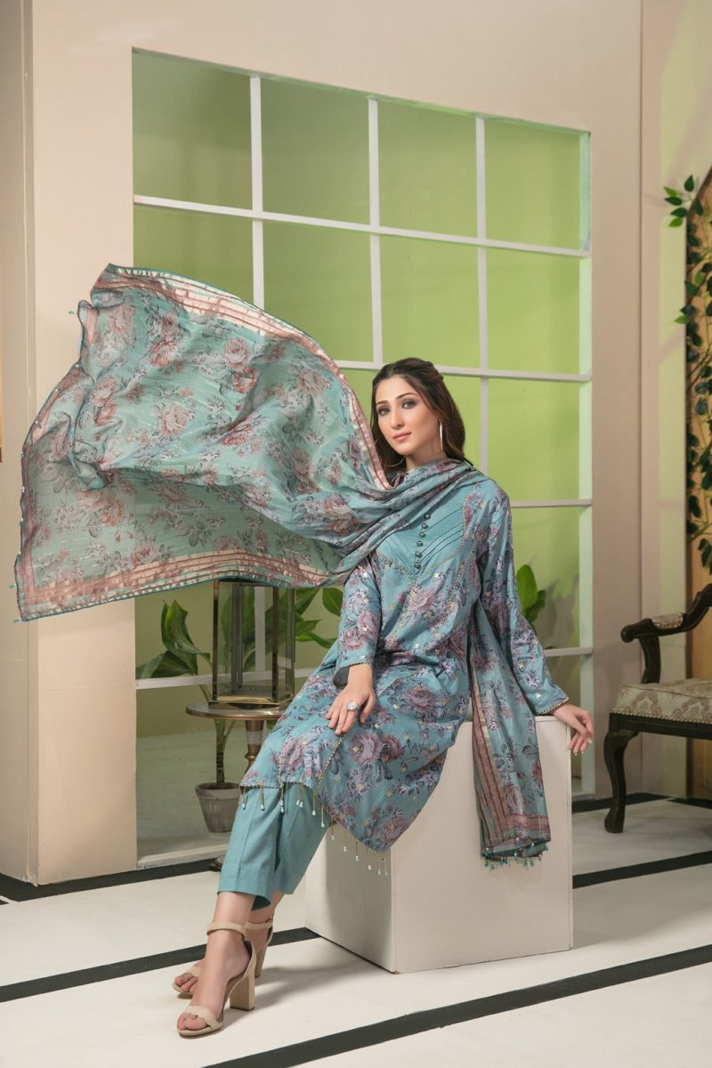 Tawakkal Fabrics 3 Piece Stitched All Over Embroidered Bareeza Digital Printed Lawn Suit D-7070