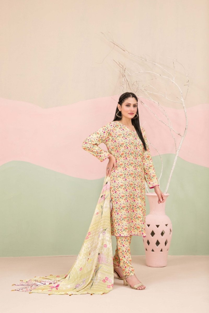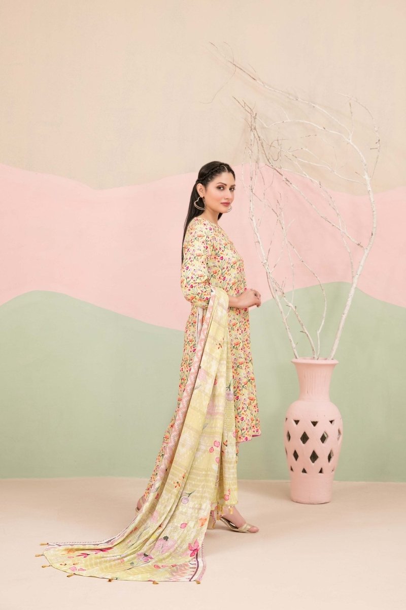 Tawakkal Fabrics 3 Piece Stitched Boti Embroidered Digital Printed Leather Peach Suit - D-9773