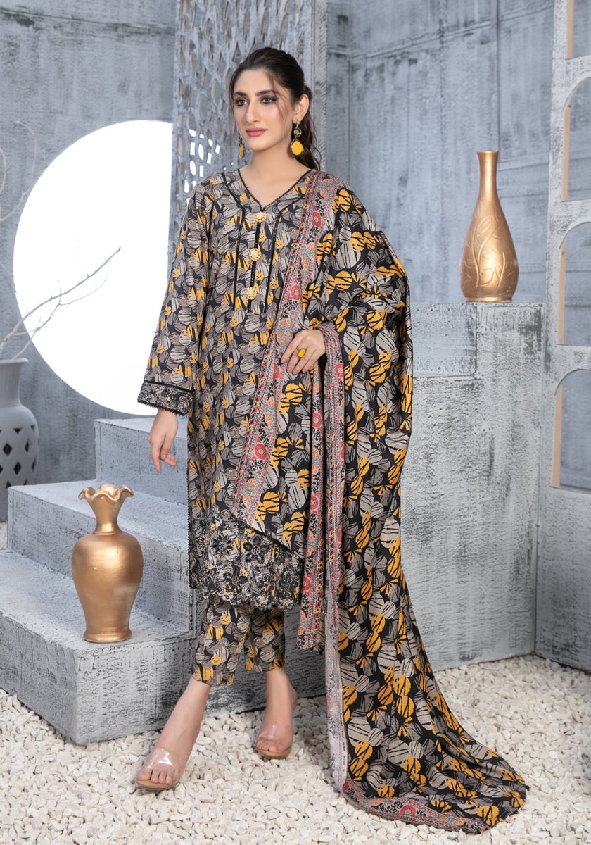Tawakkal Fabrics 3 Piece Stitched Daman Embroidered Digital Printed Khaddar Suit D-9690