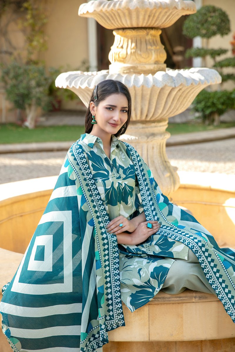 Tawakkal Fabrics 3 Piece Stitched Digital Printed Bana Dora Slub Lawn Suit - D-1510