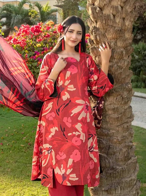 Tawakkal Fabrics 3 Piece Stitched Digital Printed Bana Dora Slub Lawn Suit - D-1513