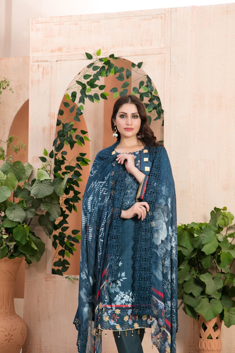 - Digital Printed Schiffli Embroidered Chiffon Dupatta with Embellishments