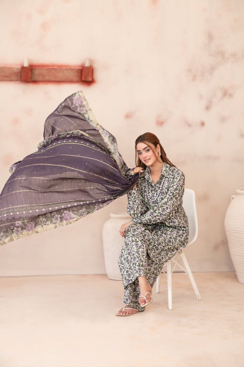 Tawakkal Fabrics 3 Piece Stitched Digital Printed Staple Suit - D-3792