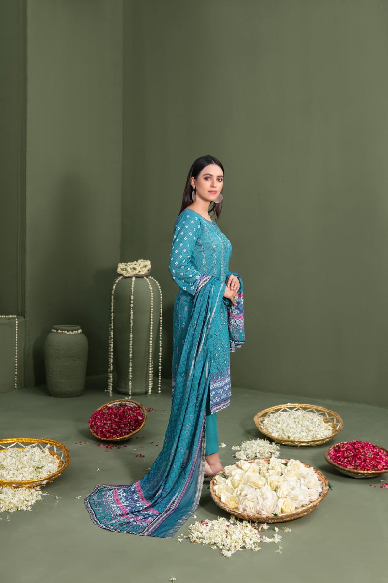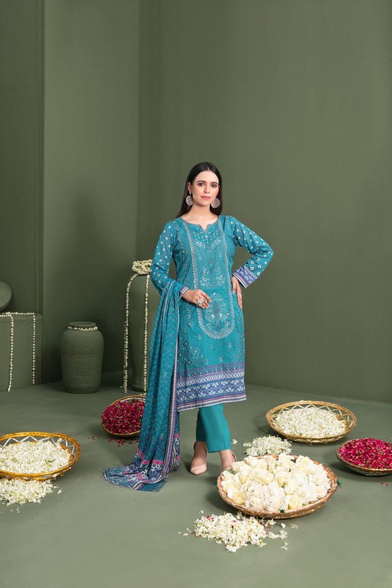 Tawakkal Fabrics 3 Piece Stitched Embroidered Digital Printed Lawn Suit - D-3063