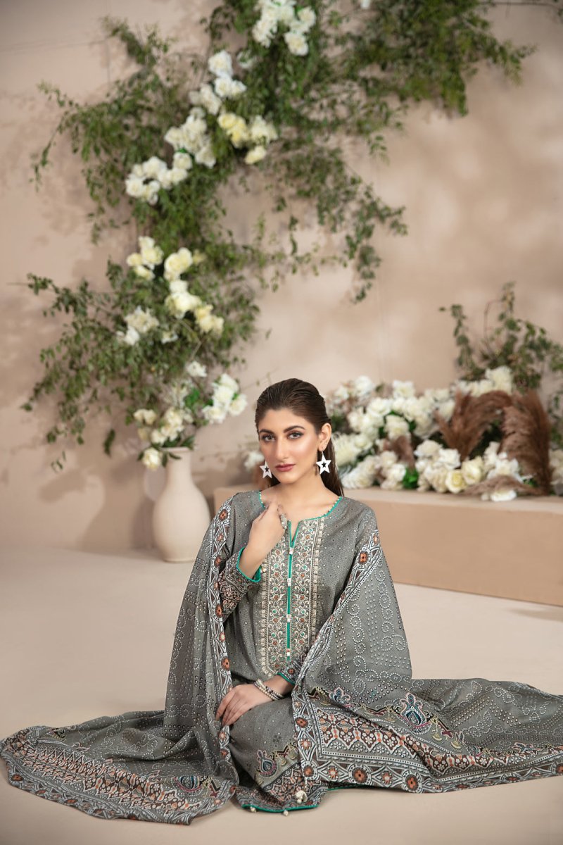 Tawakkal Fabrics 3 Piece Stitched Embroidered Digital Printed Lawn Suit D-8547