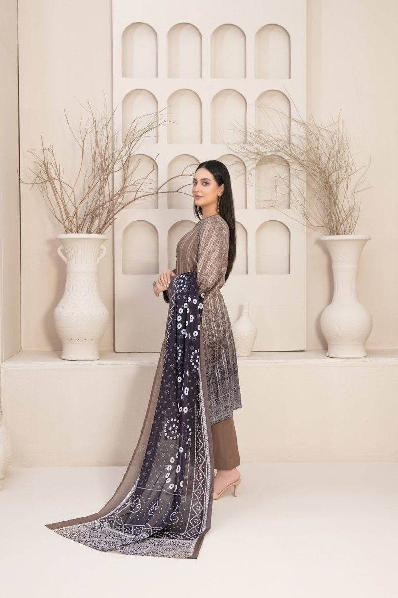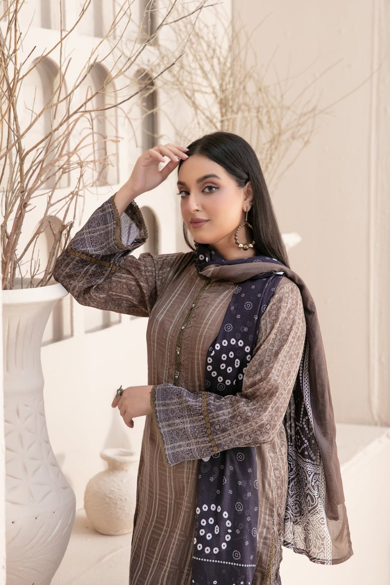 Tawakkal Fabrics 3 Piece Stitched Embroidered Digital Printed Lawn Zari Line Suit - D-2962