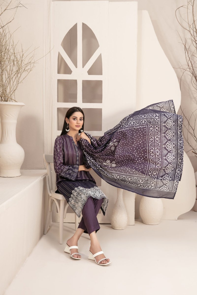 Tawakkal Fabrics 3 Piece Stitched Embroidered Digital Printed Lawn Zari Line Suit - D-2963