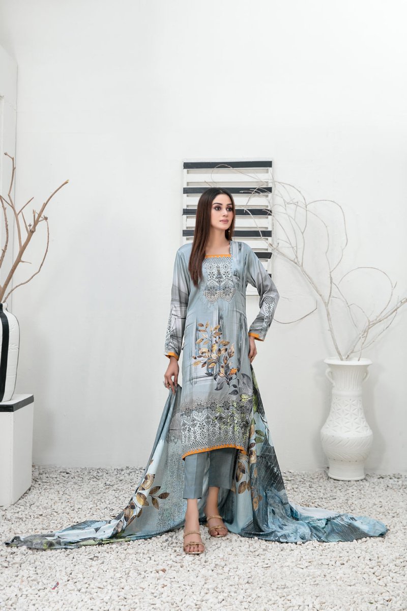 Tawakkal Fabrics 3 Piece Stitched Embroidered Digital Printed Staple Suit - D-1096