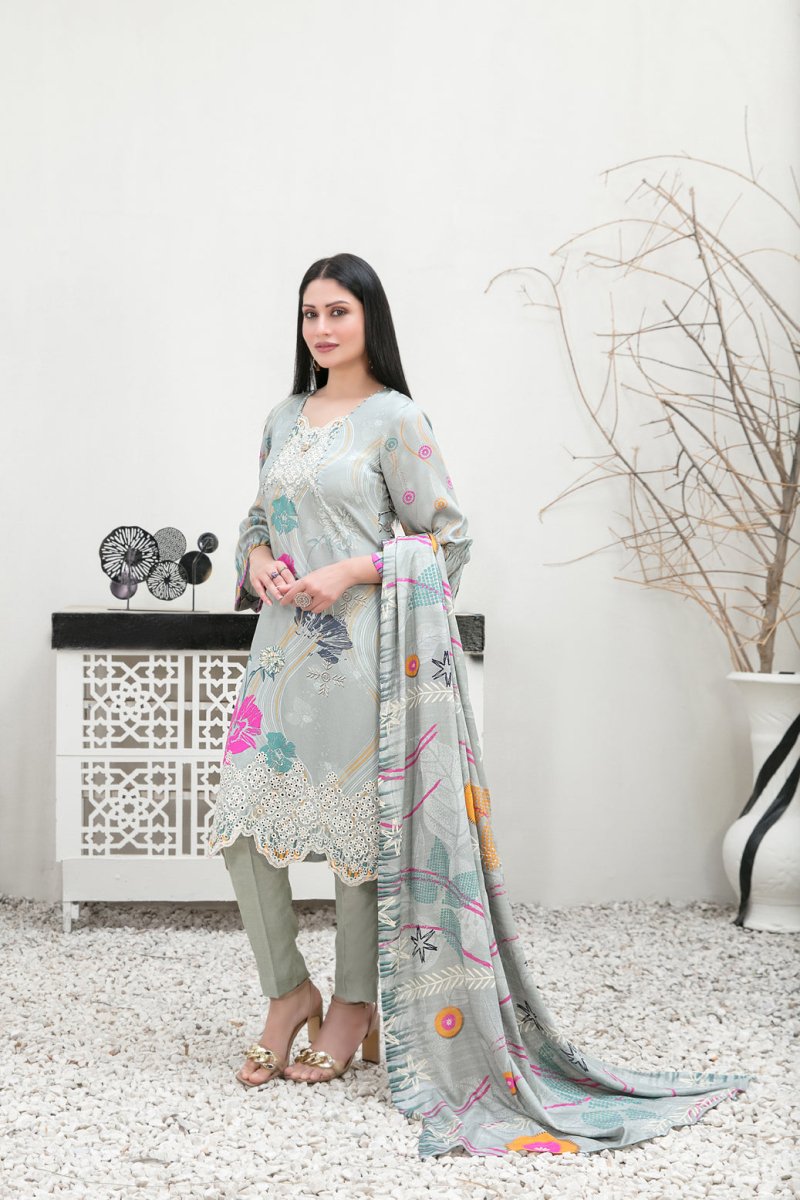 Tawakkal Fabrics 3 Piece Stitched Embroidered Digital Printed Staple Suit - D-1100