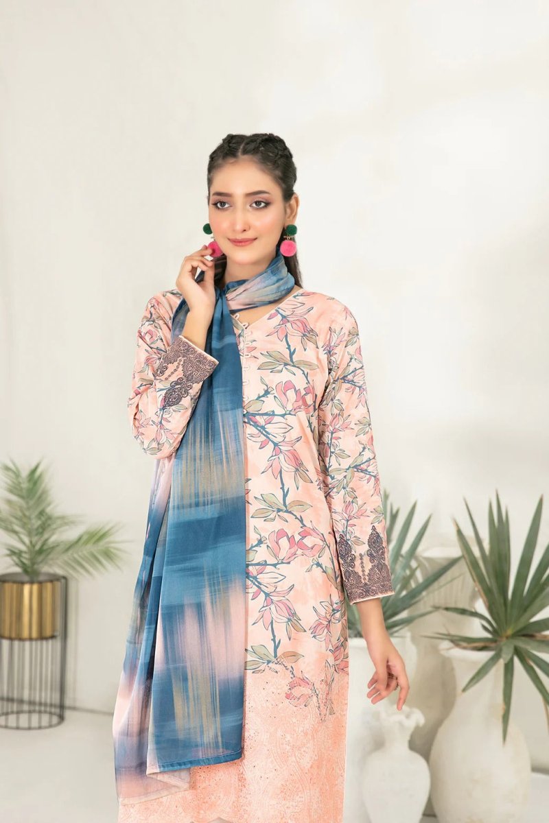 Tawakkal Fabrics 3 Piece Stitched Embroidered Digital Printed Viscose Suit - D-3681