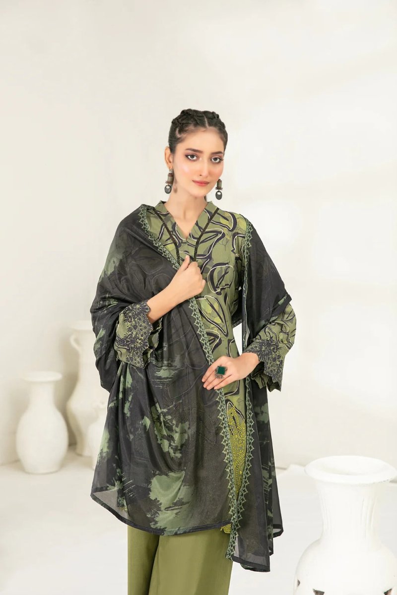 Tawakkal Fabrics 3 Piece Stitched Embroidered Digital Printed Viscose Suit - D-3682