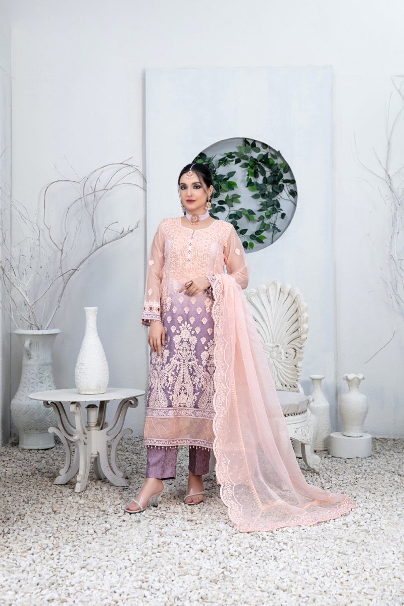 Tawakkal Fabrics 3 Piece Stitched Embroidered organza digital print Suit - D-1344