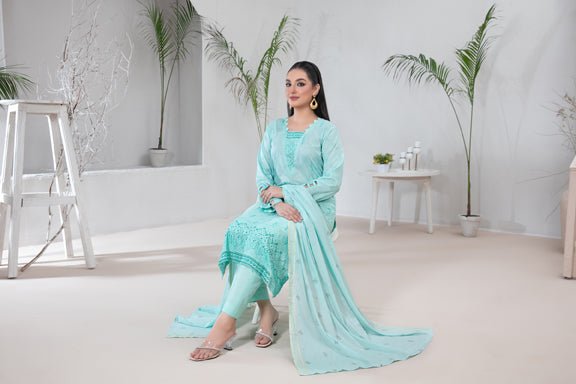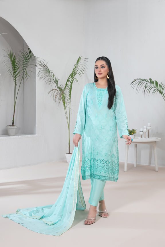 Tawakkal Fabrics 3 Piece Stitched Embroidered Printed Lawn Suit - D-9124