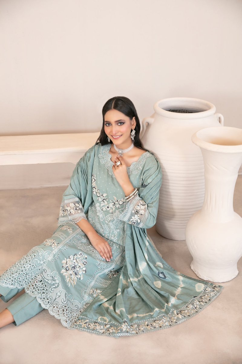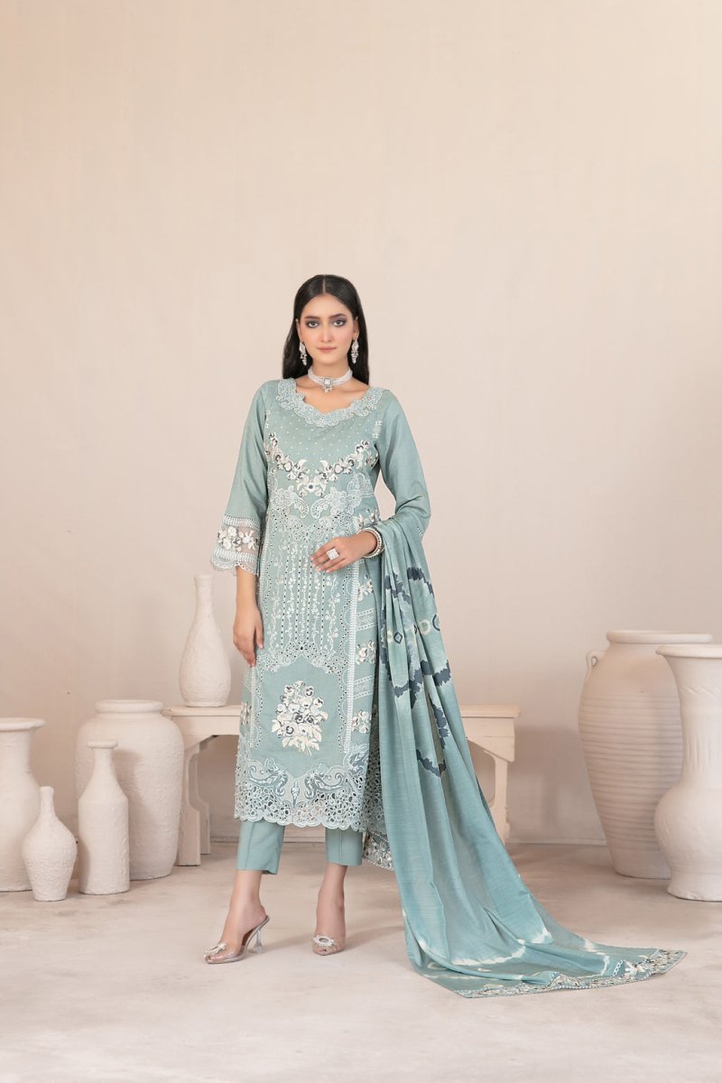 Tawakkal Fabrics 3 Piece Stitched Fancy Embroidered Slub Viscose Suit - D-1048