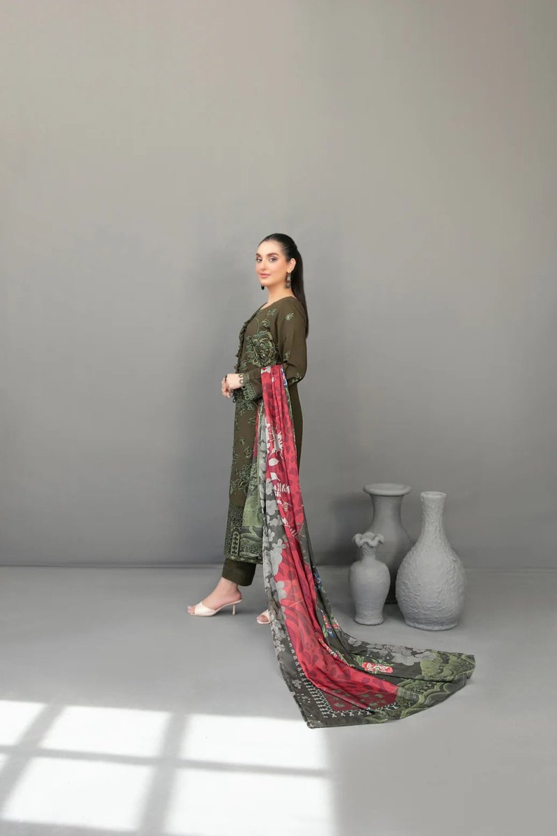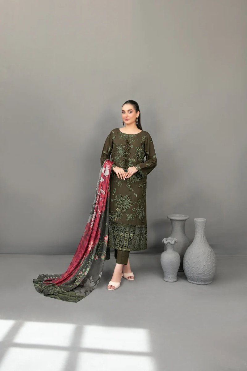 Tawakkal Fabrics 3 Piece Stitched Fancy Embroidered Slub Viscose Suit - D-3620