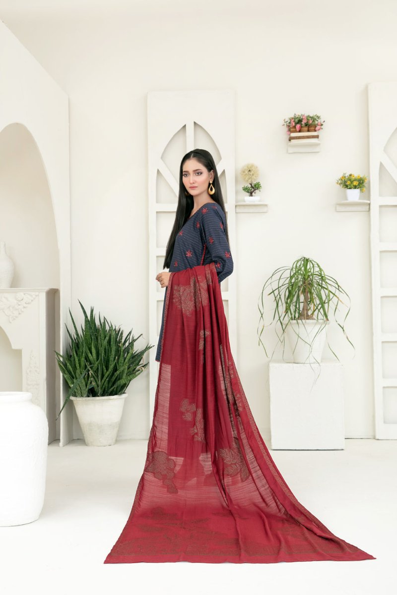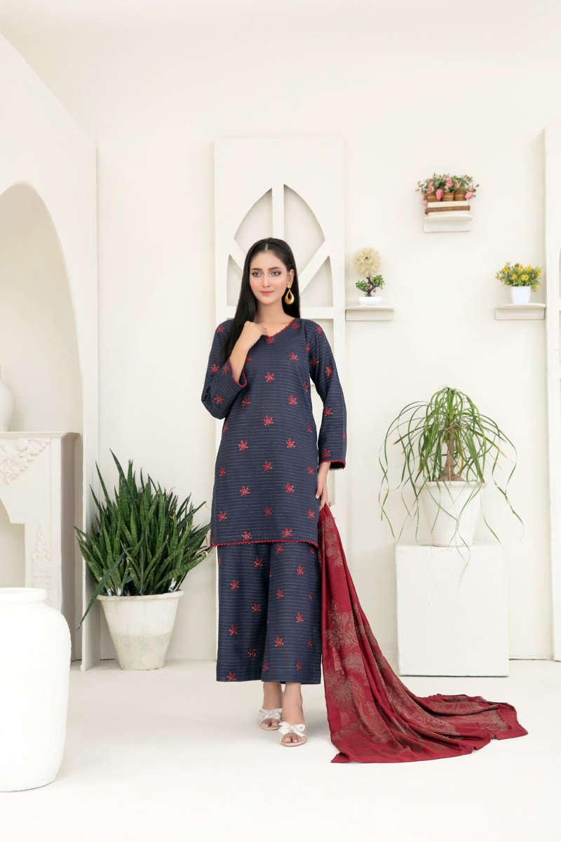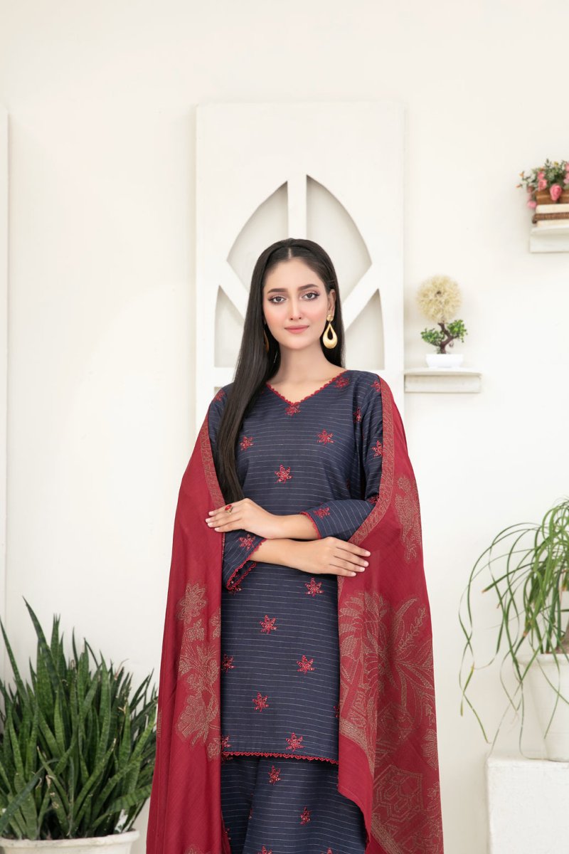 Tawakkal Fabrics 3 Piece Stitched Fancy Embroidered Zari Khaddar Suit - D-3861