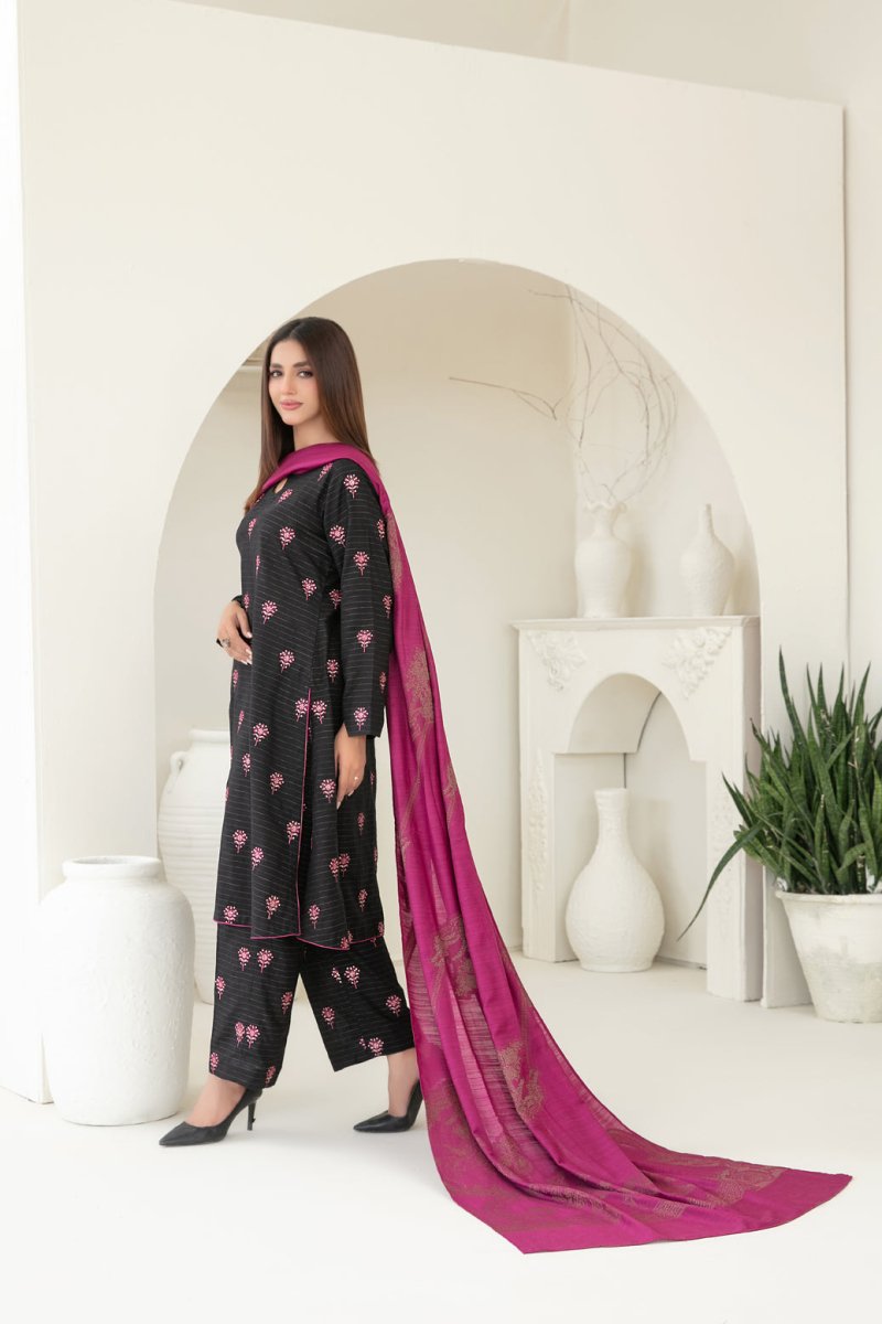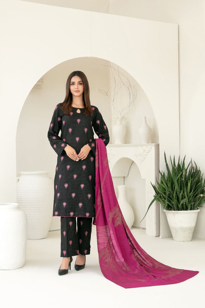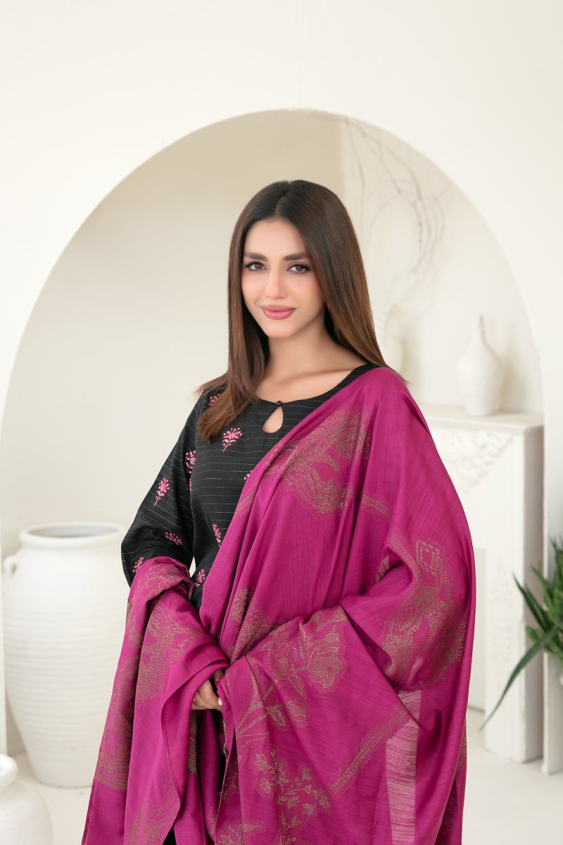Tawakkal Fabrics 3 Piece Stitched Fancy Embroidered Zari Khaddar Suit - D-3862