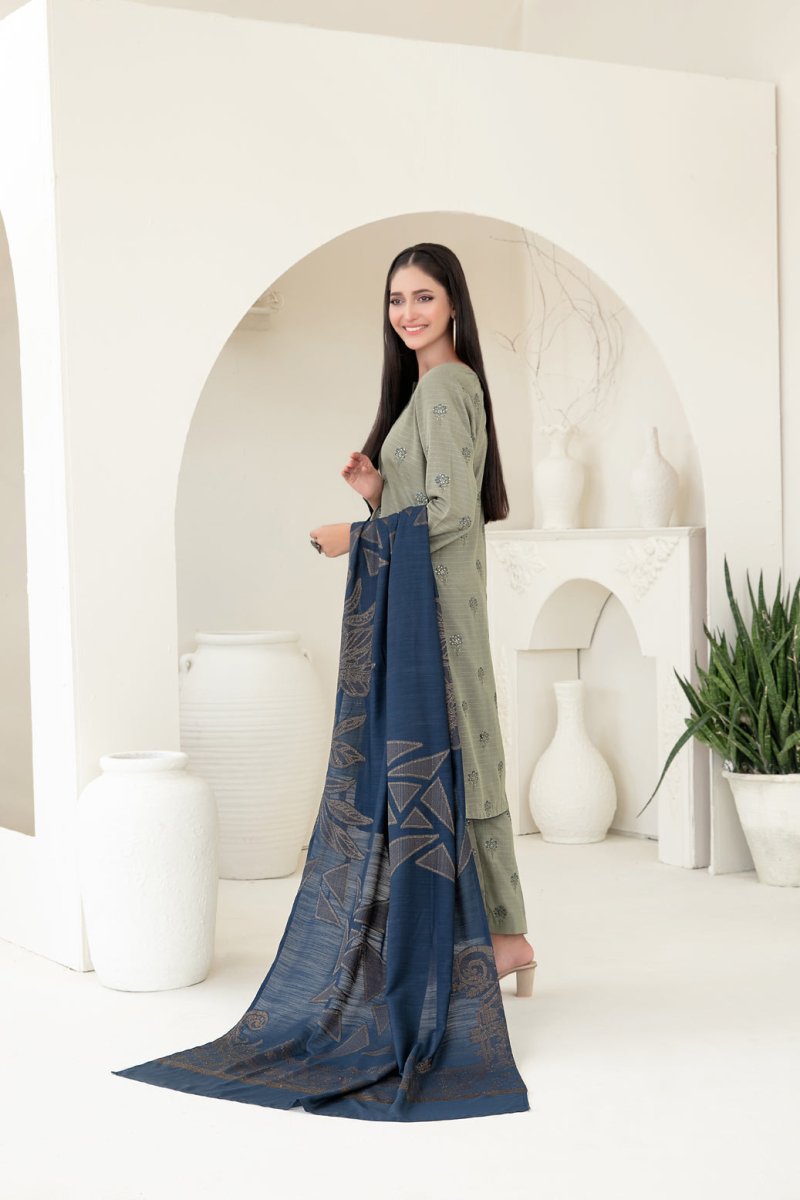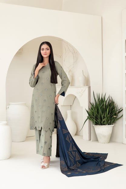 Tawakkal Fabrics 3 Piece Stitched Fancy Embroidered Zari Khaddar Suit - D-3864