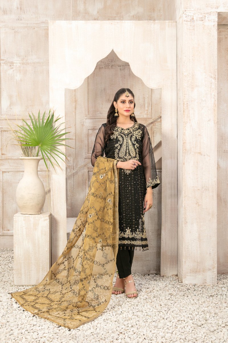 Tawakkal Fabrics 3 Piece Stitched Fancy Heavy Embroidered Organza Suit - D-9930