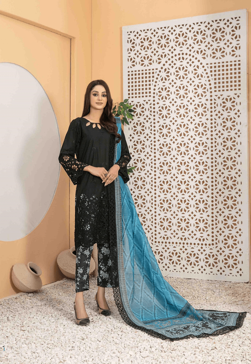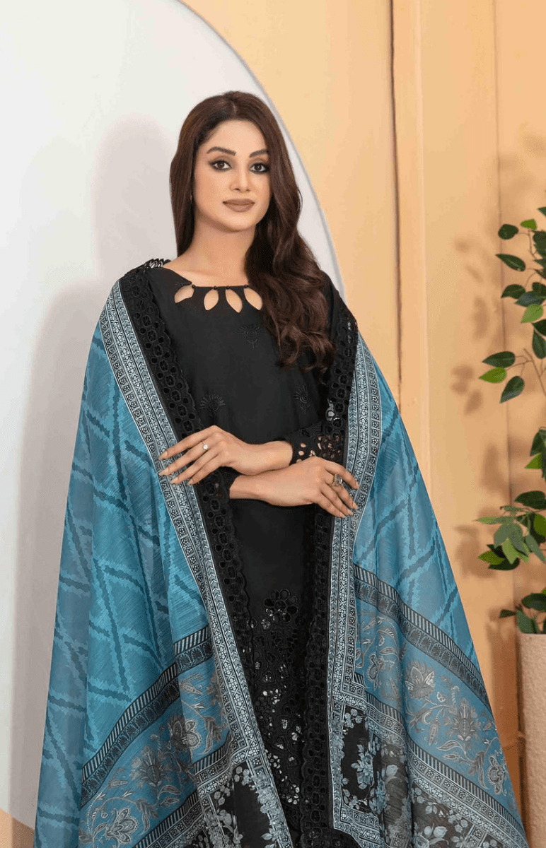 Tawakkal Fabrics 3 Piece Stitched Fancy Heavy Schiffli Embroidered Lawn Suit - D-2545