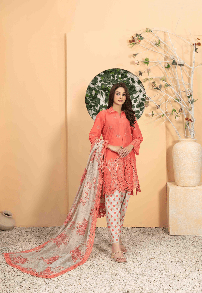 Tawakkal Fabrics 3 Piece Stitched Fancy Heavy Schiffli Embroidered Lawn Suit - D-2548