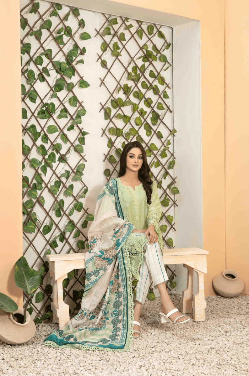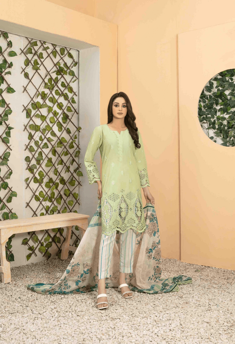 Tawakkal Fabrics 3 Piece Stitched Fancy Heavy Schiffli Embroidered Lawn Suit - D-2549