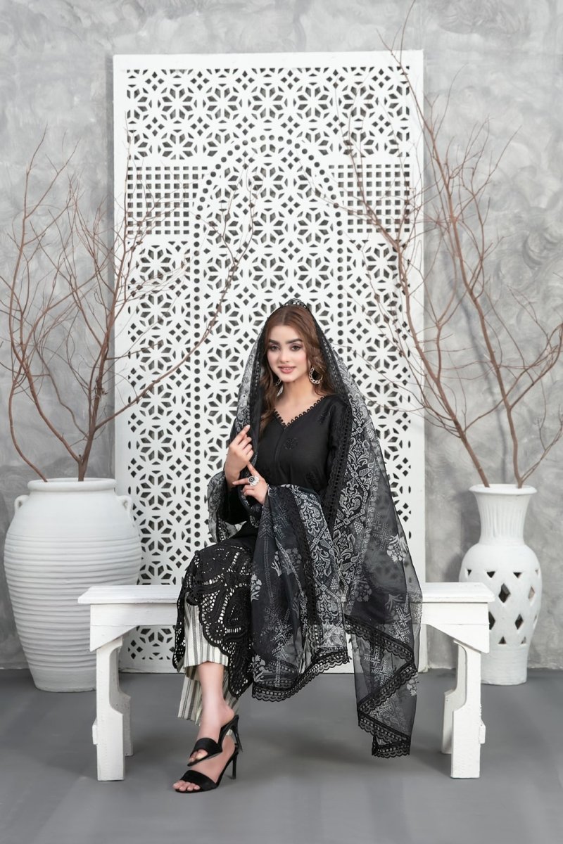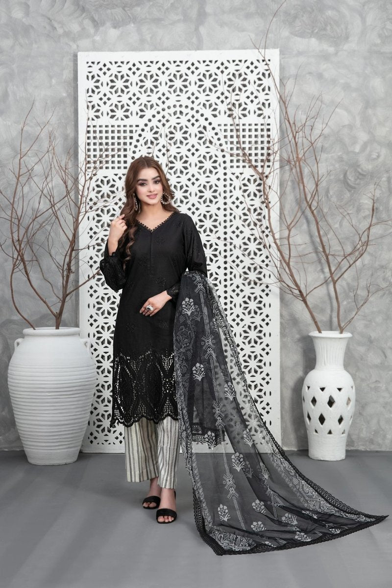 Tawakkal Fabrics 3 Piece Stitched Heavy Schiffli Embroidered Lawn Suit - D-2925