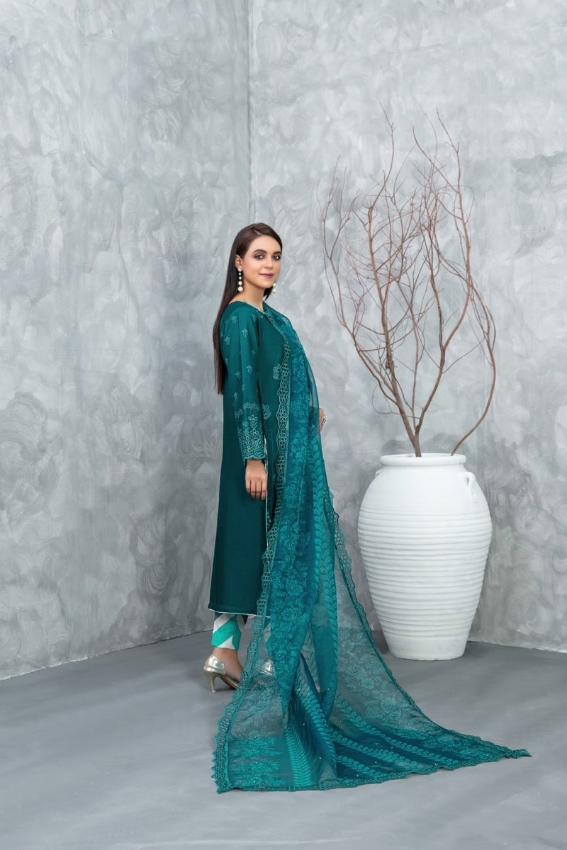 Tawakkal Fabrics 3 Piece Stitched Heavy Schiffli Embroidered Lawn Suit - D-2927