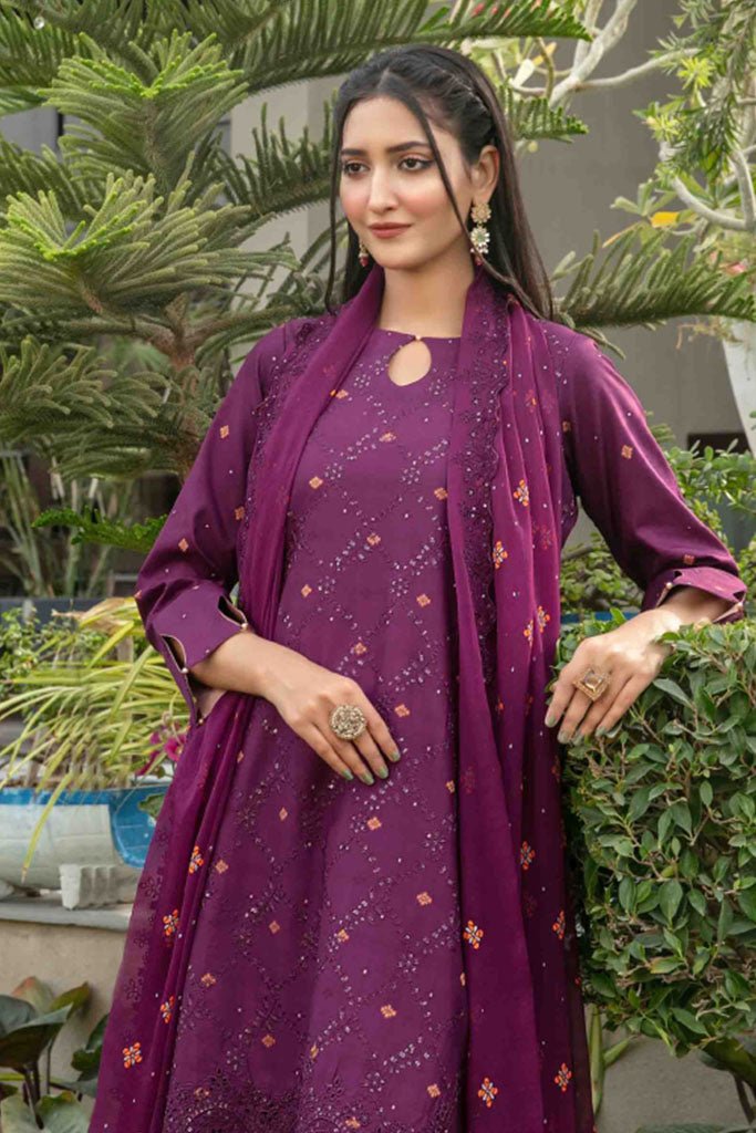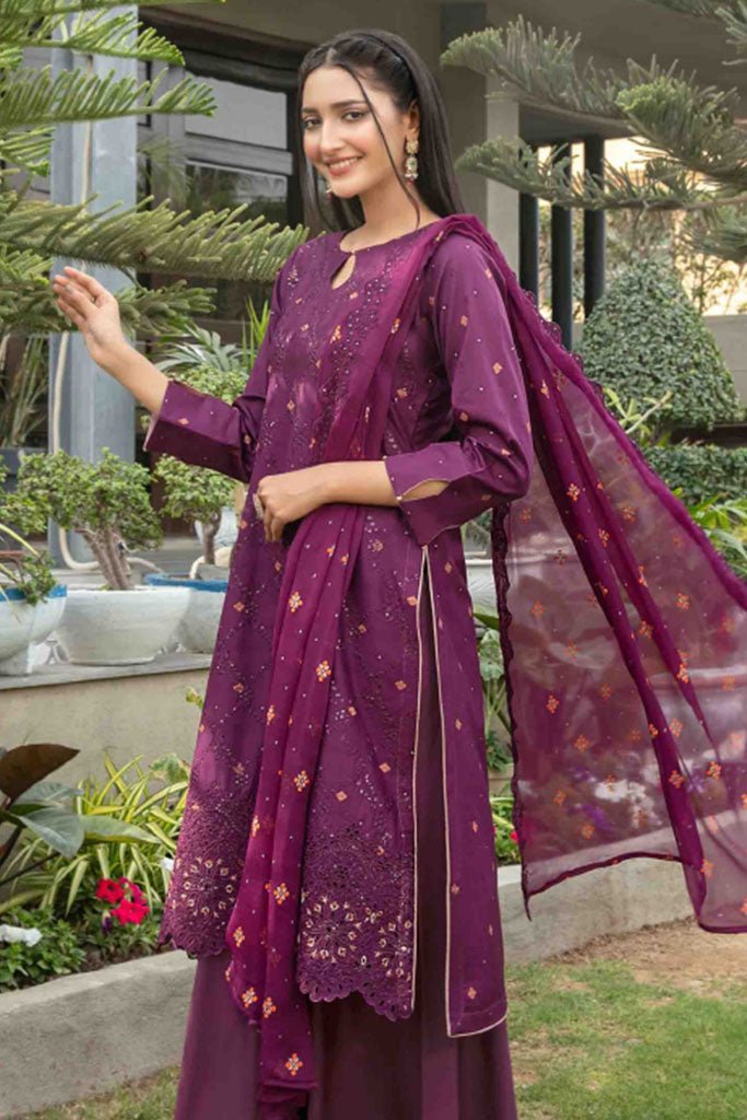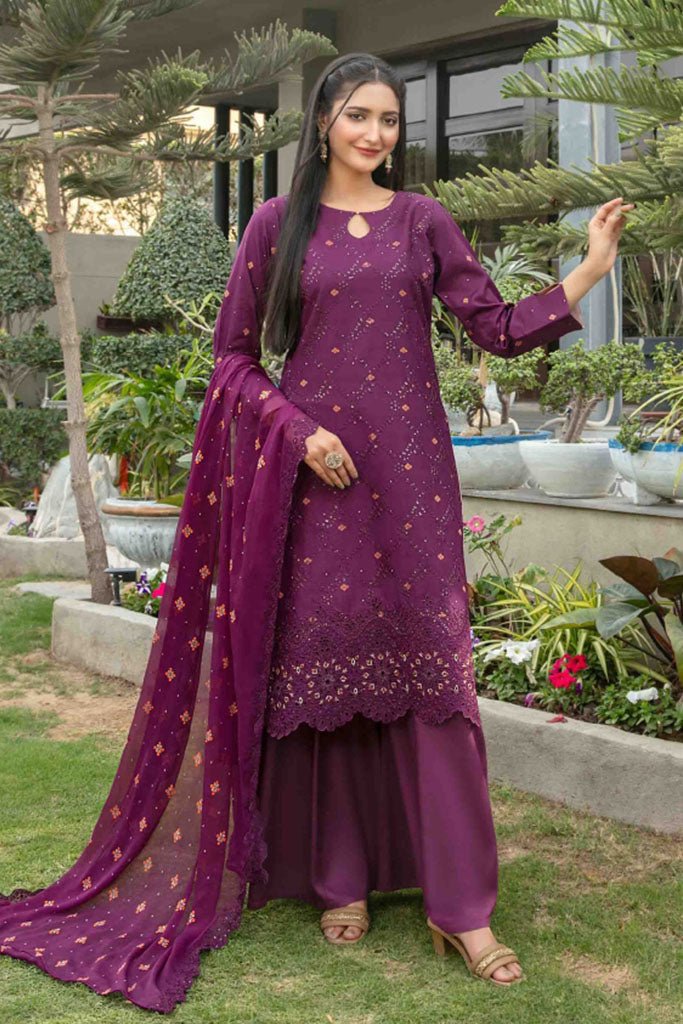 Tawakkal Fabrics 3 Piece Stitched jaal & Daman Embroidered Boti Broshia lawn Suit - D-1135