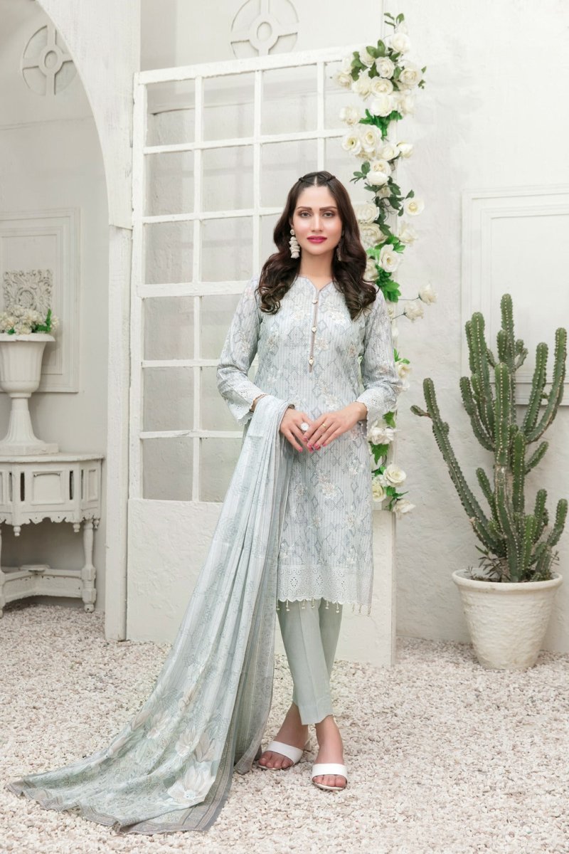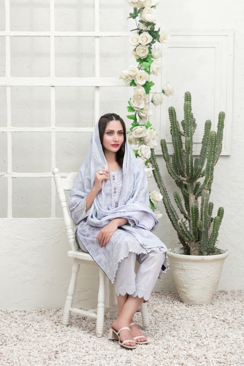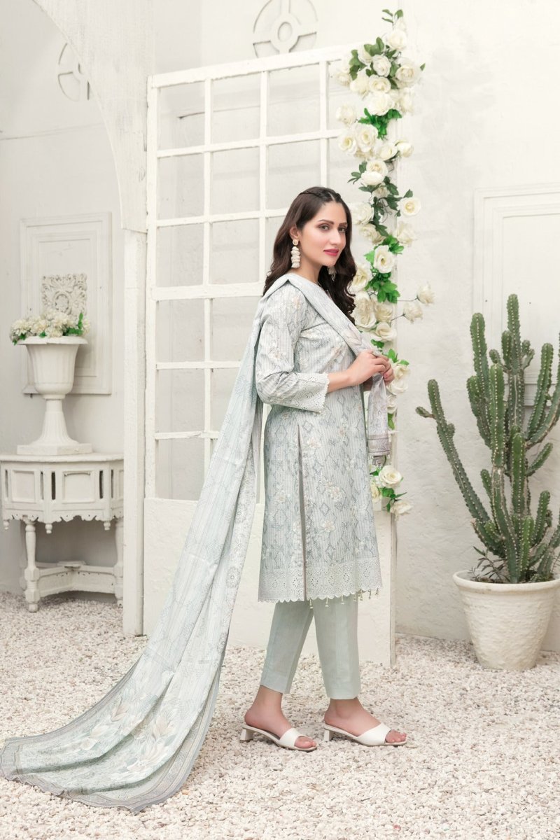 Tawakkal Fabrics 3 Piece Stitched Schiffli Daman Embroidered Digital Printed Lawn Suit D-6730