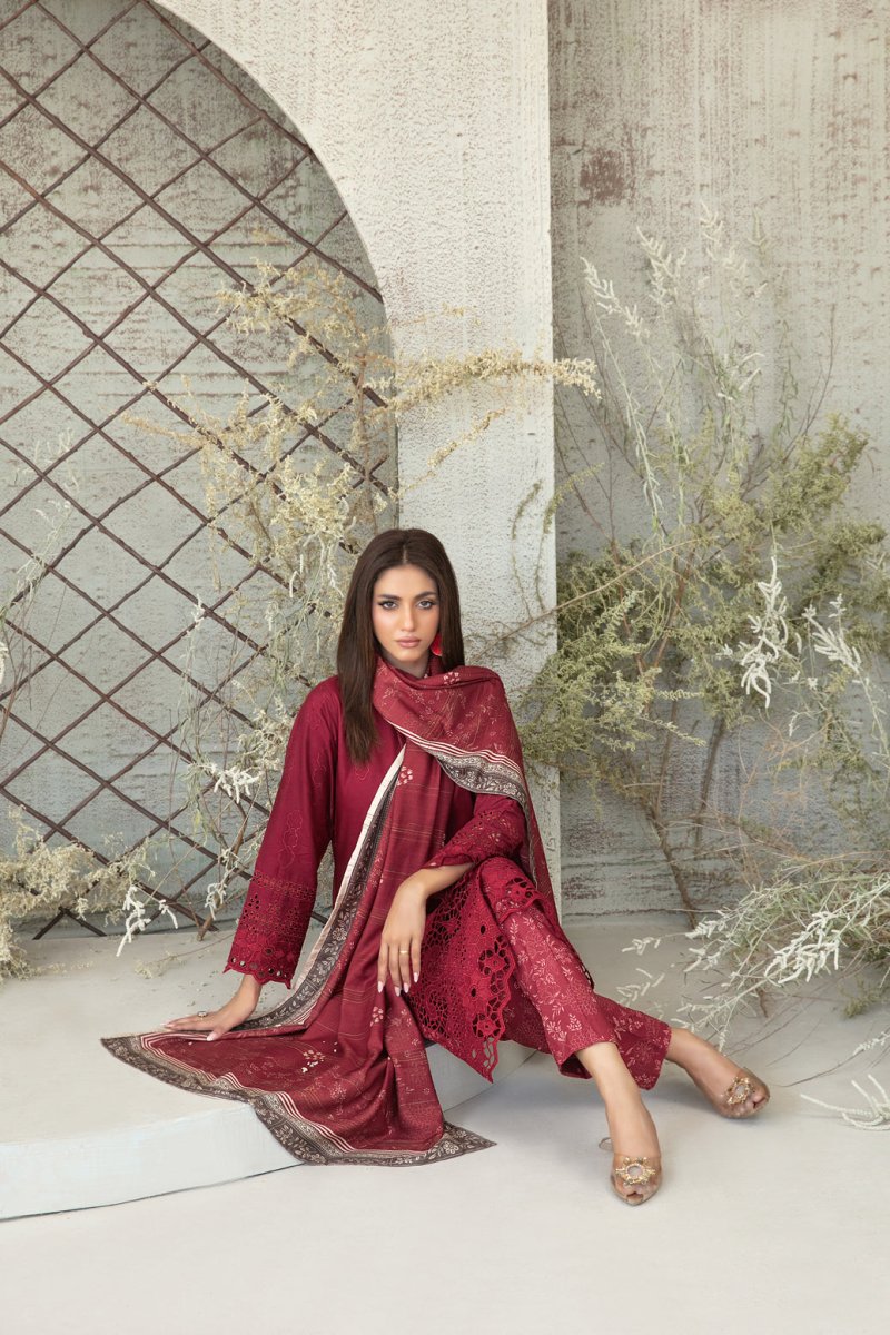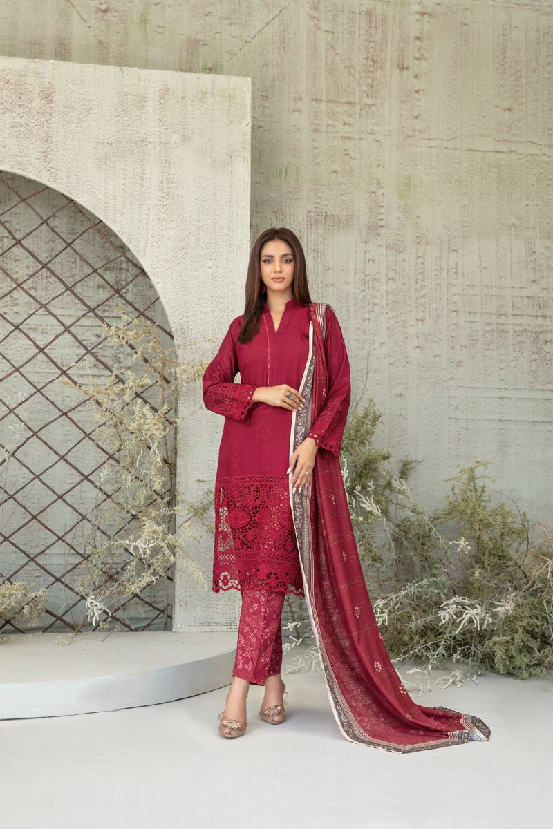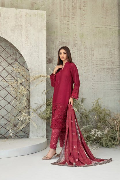 Tawakkal Fabrics 3 Piece Stitched Schiffli Embroidered Staple Suit - D-3759