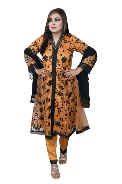The Ocean 3 Piece Stitched Embroidered Net Shirt With Chiffon Dupatta SA-004