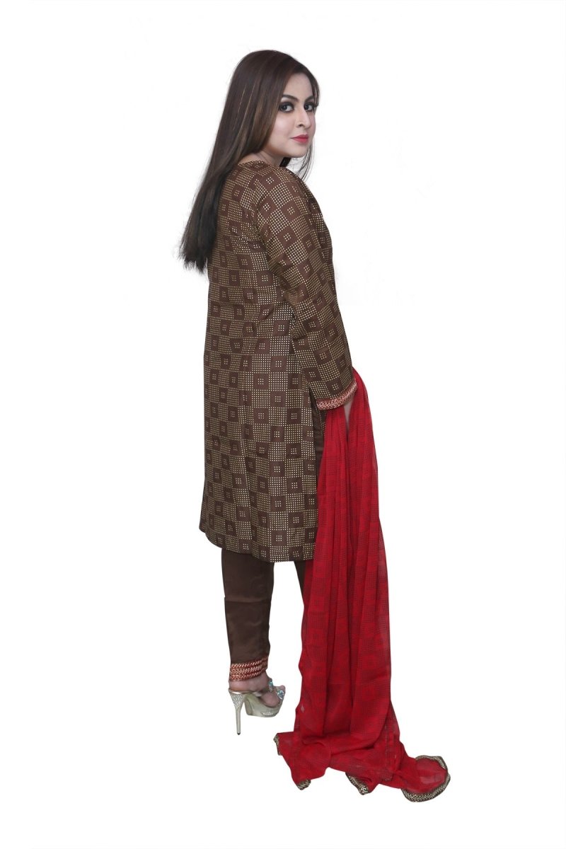 The Ocean 3 Piece Stitched Embroidered Linen Suit With Chiffon Dupatta SA-001