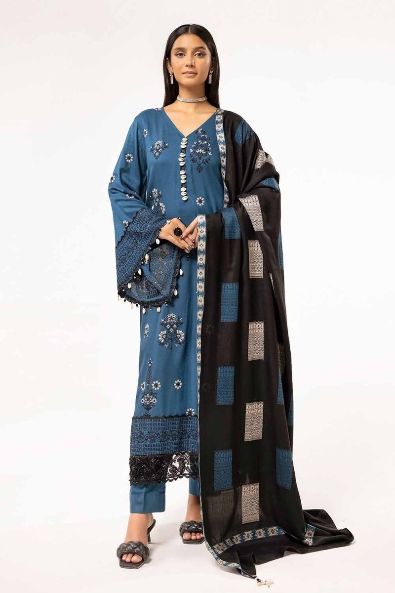 Gul Ahmed 3 Piece Unstitched Embroidered Acrylic Suit with Pashmina Dupatta AP-42033