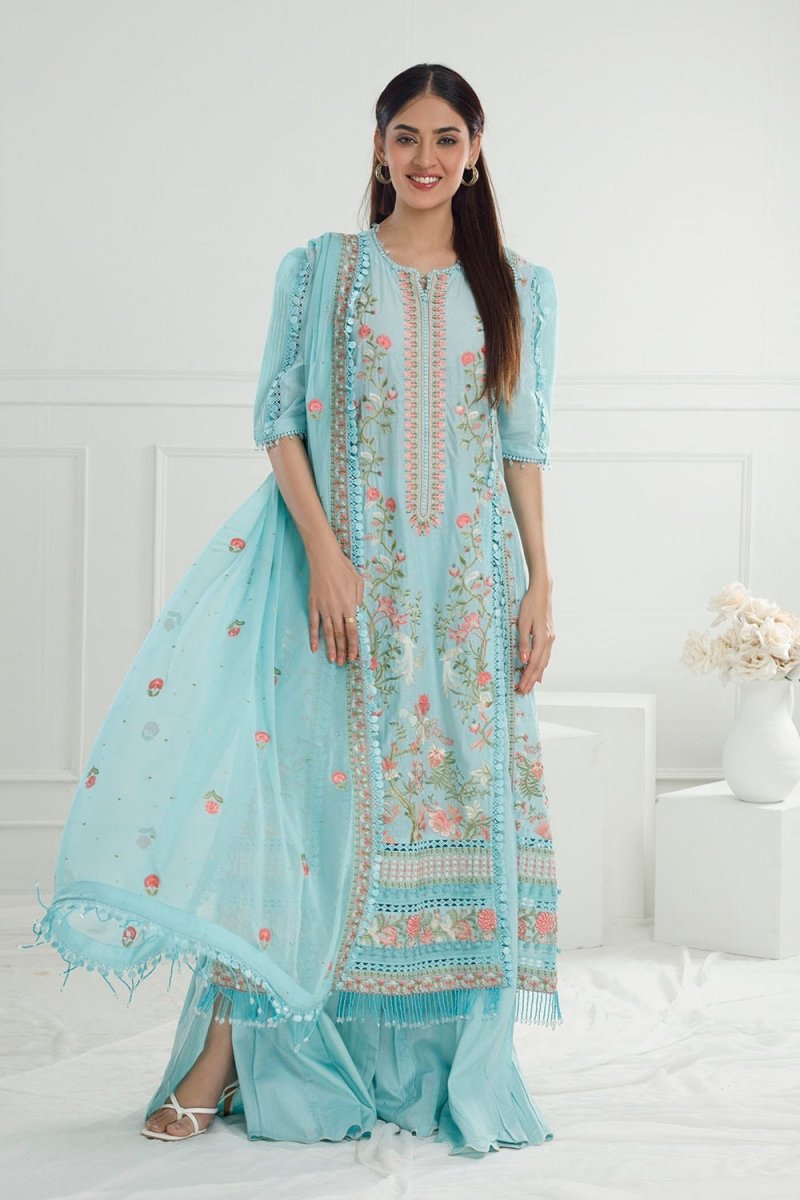 - Embroidered Lawn Shirt Front, Side Panels & Sleeves with Embroidered Borders for Front & Back. Dyed Lawn Back - 2.88 Meters