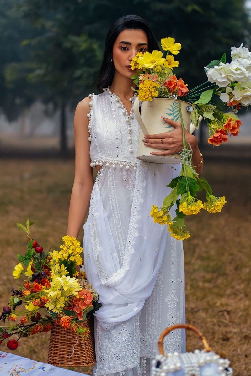Gul Ahmed 3 Piece Unstitched Embroidered Lawn Suit with Embroidered Chiffon Dupatta PM-52037