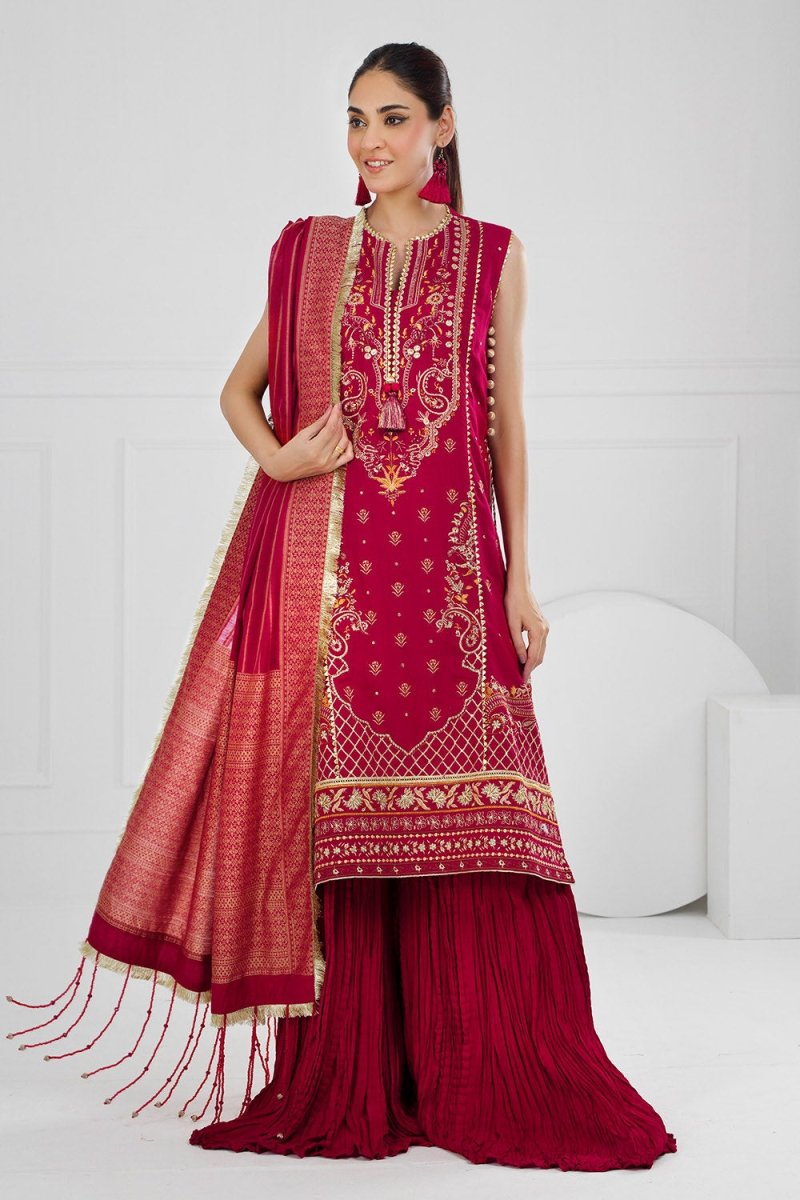 Gul Ahmed 3 Piece Unstitched Embroidered Raw Silk Suit with Jacquard Dupatta FE-52124