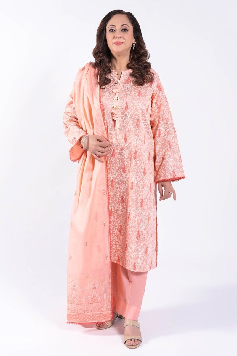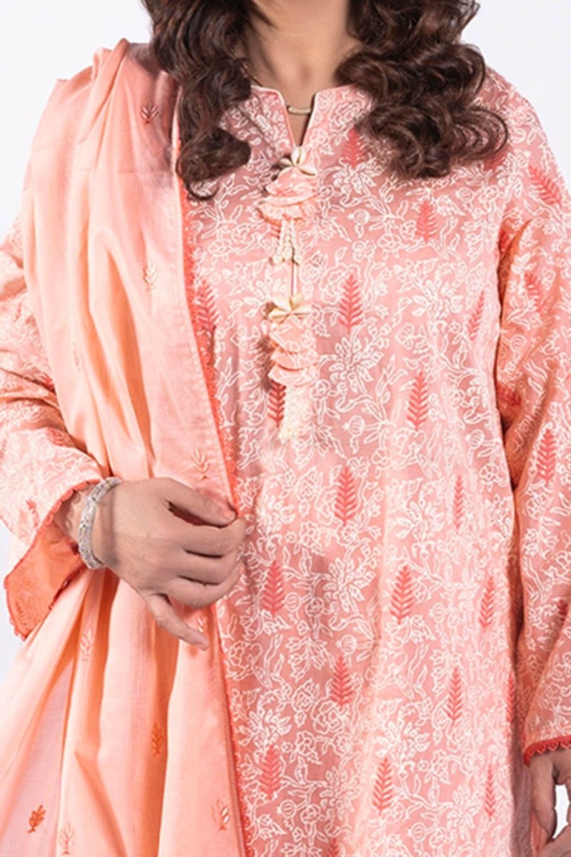 Gul Ahmed 3 Piece Unstitched Lacquer Printed Lawn Suit with Embroidered Denting Lawn Dupatta DN-52002