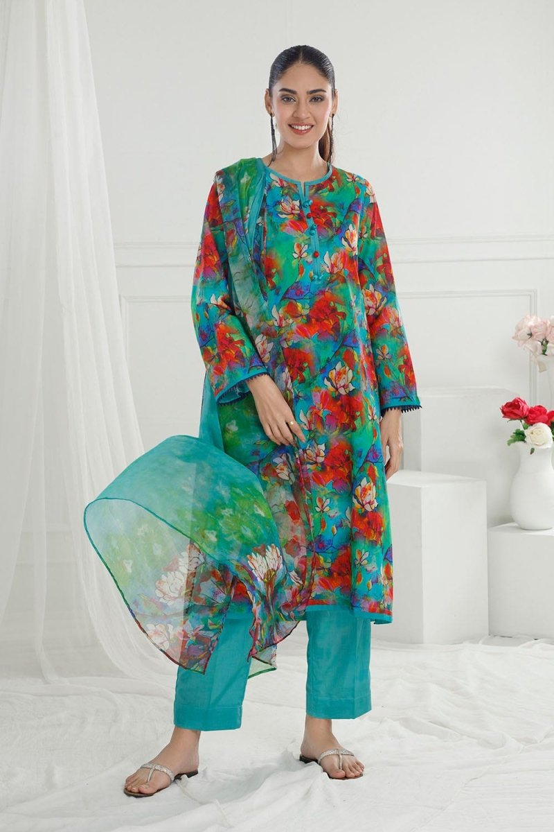 Gul Ahmed 3 Piece Unstitched Printed Lawn Suit with Printed Pure Silk Chiffon Dupatta C-52003